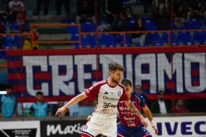 Al Pala Cesaroni di Genzano, gara importante per entrambe le formazioni e i rispettivi obiettivi di classifica. Alla prima occasione passa Genzano, con il solito Julio De Oliveira, abile a sfruttare un pallone vacante, e a insaccare inesorabilmente. Barichello dopo una bella azione personale, spara alto di poco sulla traversa. E’ Nem a insidiare di nuovo la porta pesarese con un destro a fil di palo. Poi è la volta di Tonidandel, a sibilare il palo alla destra di Di Ponto. Lo stesso portiere genzanese si oppone con un tuffo plastico alla conclusione incrociata di Gastaldo. Bissoni con la punta, manca di poco il raddoppio per i padroni di casa. Barichello mette il turbo, e s’invola a tutto campo, ma la sua conclusione è salvata sulla linea dalla difesa Ecocity. Prima un tiro di Di Ponto, quasi sorprende il portiere ospite, che salva ma fa crollare la porta. Nell’azione successiva è Ramon a inventarsi un’azione personale, bruciando la difesa di casa e battendo Di Ponto sotto l’incrocio dei pali. Brunelli scaricava con rabbia in porta pesarese, trovando l’opposizione dell’estremo difensore pesarese. Ma era ancora Taborda costretto a un salvaggio davanti alla propria porta, con un Pesaro in attacco sulle ali dell’entusiasmo. E’ Nem a firmare il nuovo vantaggio genzanese, approfittando di una palla vacante al limite, insaccando con la consueta precisione. Taurisano, sul finire del tempo è abile a rimpallare la palla sottomisura, superando Di Ponto. A pochi secondi dalla sirena, Taborda costringe il portiere ospite in angolo. Finisce così Il primo tempo, sul punteggio di 2 a 2. La ripresa vede subito Barichello impegnare in angolo Di Ponto. Ancora Di Ponto, dice due volte di no a Patias, salvando il risultato per i genzanesi. Un Pesaro rientrato decisamente meglio in campo degli avversari. Infatti, è Tonidandel a completare la rimonta biancorossa, portando in vantaggio i suoi. Ancora un miracolo di Di Ponto in uscita disperata, su Saponara lanciatissimo a rete. Bissoni prova a suonare la carica per i suoi, ma Manservigi è bravo a bloccare. Poi è il turno di Taborda, a scuotere il portiere pesarese con una gran conclusione dalla distanza. Sempre il 14 argentino, che sembra l’ultimo a voler mollare, effettua un gran tiro fuori di poco. Poi Patias si inventa un autentico capolavoro, con un pregevole scavino a superare con un pallonetto incredibile Di Ponto. Un goal spettacolare e di pregevole fattura, che desta stupore e viene applaudito da tutto il Palazzetto. L’Ecocity tentava la disperata carta del portiere di movimento. Taborda, ancora lui, vedeva il suo tiro a botta sicura, salvato in extremis dalla difesa pesarese. Ultimi secondi in apprensione con tentativi dei locali di riaprire la gara, e occasioni fallite di poco a porta vuota dal Pesaro. Al suono della sirena, un più motivato Italservice, conquistava tre punti fondamentali in ottica futura.