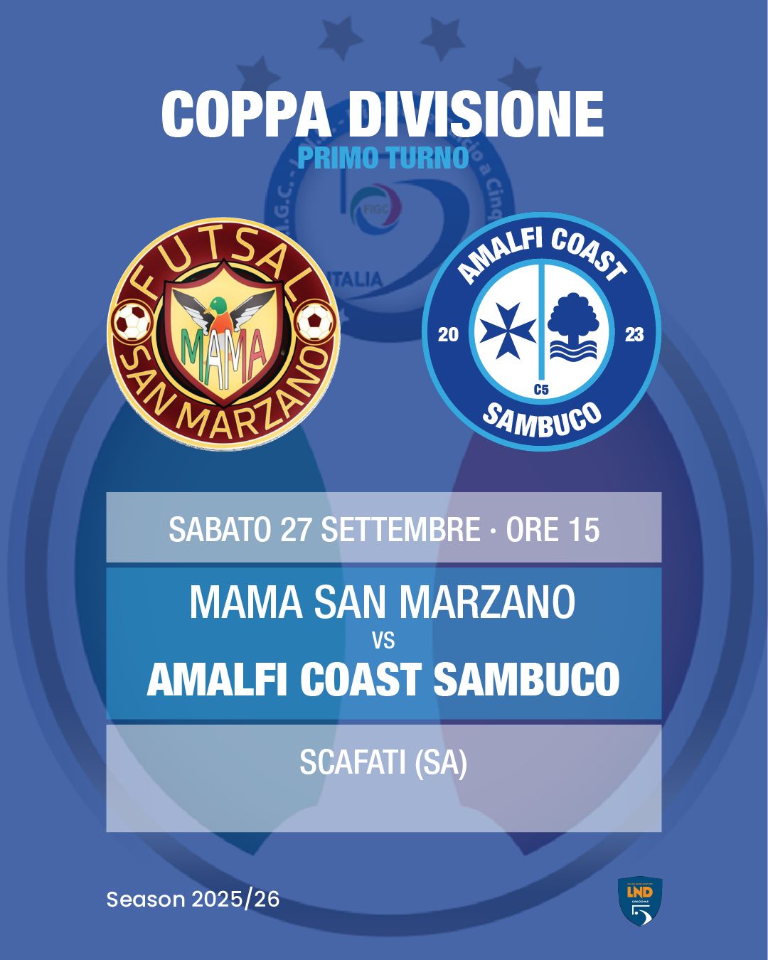 Il triangolare di Coppa Divisione si chiuderร con la sfida tra Amalfi Coast Sambuco e Mama San Marzano, in programma al Gymnasium di Scafati sabato 27 settembre alle ore 15.
