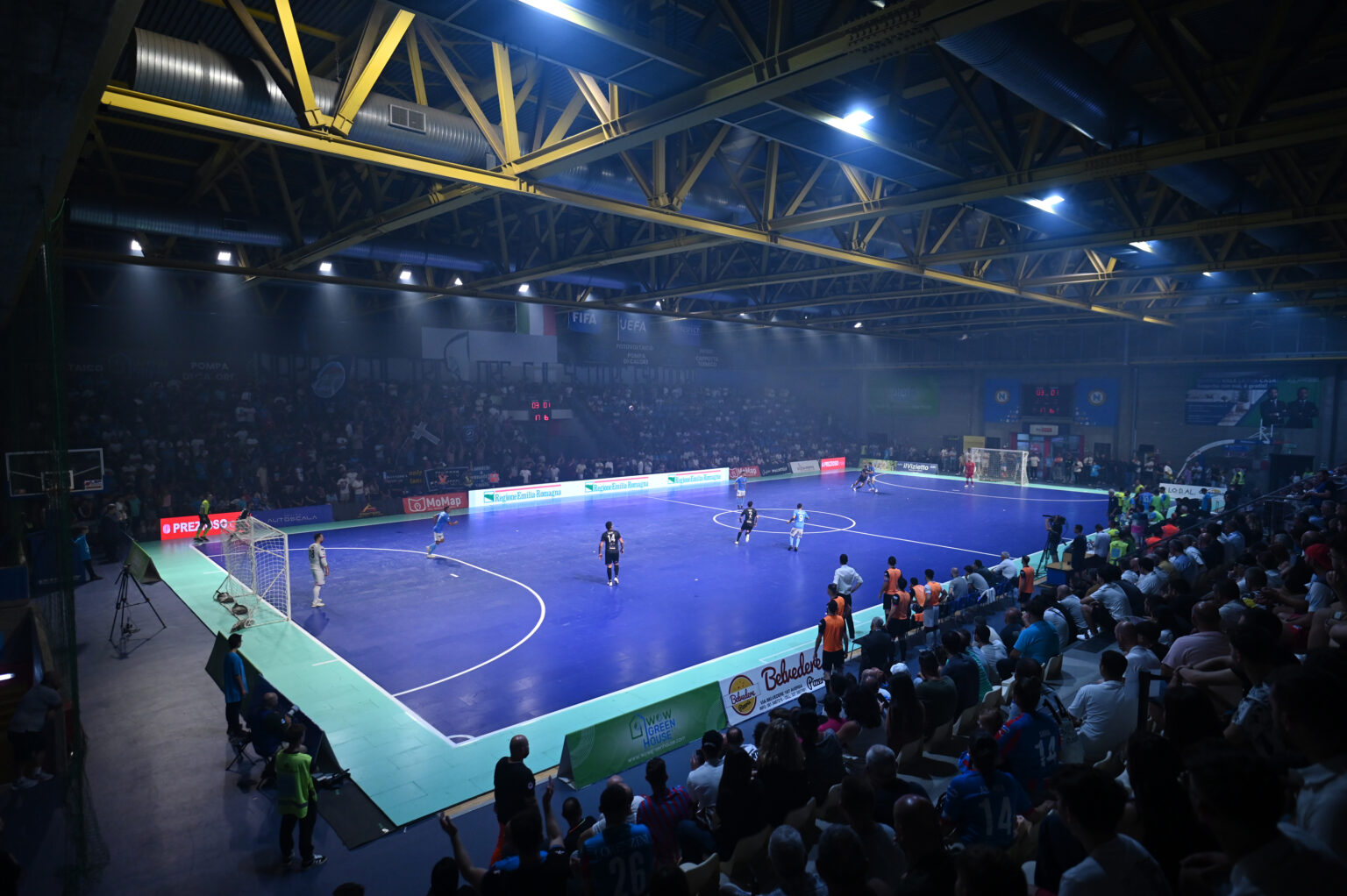 Il Napoli Futsal saluta il PalaJacazzi di Aversa dopo due stagioni. Un palazzetto a cui legheremo per sempre il ricordo dei festeggiamenti di una storica Coppa Italia e di due finali scudetto raggiunte, le immagini degli spalti gremiti impresse nella memoria e l’entusiasmo contagioso dei bambini e ragazzi di Aversa per i loro beniamini.