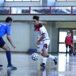 Gara bloccata dal punto di vista tattico nel primo tempo, con pochissime occasioni da una parte e dall’altra (da segnalare soltanto un paio di ottime parate di Gionta e un grande intervento del suo dirimpettaio su Di Martino). La logica conseguenza di ciò è lo 0-0 con il quale si conclude la prima frazione di gioco, sperando in un secondo tempo meno soporifero. L’auspicio si realizza ad inizio ripresa: Gionta si supera in modo mirabile in due circostanze, ma dopo qualche minuto è la squadra di Triolo a trovare la rete del vantaggio con Coppolella, abile a sfruttare l’assist di Di Martino. Gli ospiti rispondono prontamente pareggiando un minuto più tardi con Petrilli, e successivamente l’incontro sembra tornare sui binari dell’equilibrio. A sette minuti dal termine, però, sale in cattedra il rientrante Simone Saccoccio (in foto): “Magic Box”, quest’anno frenato da diversi problemi fisici, toglie letteralmente le castagne dal fuoco, andando a segno prima con una conclusione da fuori area, e poi al termine di un pregevole scambio con Di Martino.