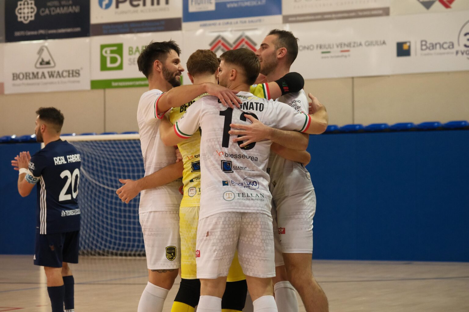 Una partita alla rincorsa del Maccan Prata che, alla fine, ha premiato la formazione romana riuscita ad agguantare il pari nei secondi finali di gara. Dopo un primo tempo in cui i gialloneri sono riusciti a primeggiare grazie alle reti di Caverzan e Grigolon, nella ripresa si vive tutt’altra gara. Il Real Fabrica, che già aveva accorciato con Martines nel finale della prima frazione, si fa trovare pronto. Dopo l’allungo di Zecchinello, Nunzio subito rimette in corsa la formazione di mister Lucchetti. Caverzan, firmando così una doppietta, allunga subito dopo il gol del Real Fabrica ma questo scuote ancora di più la squadra di Roma. Prima Frigerio riapre il risultato portando gli ospiti ad una lunghezza e poi El Johari gela il tifo del PalaPrata.