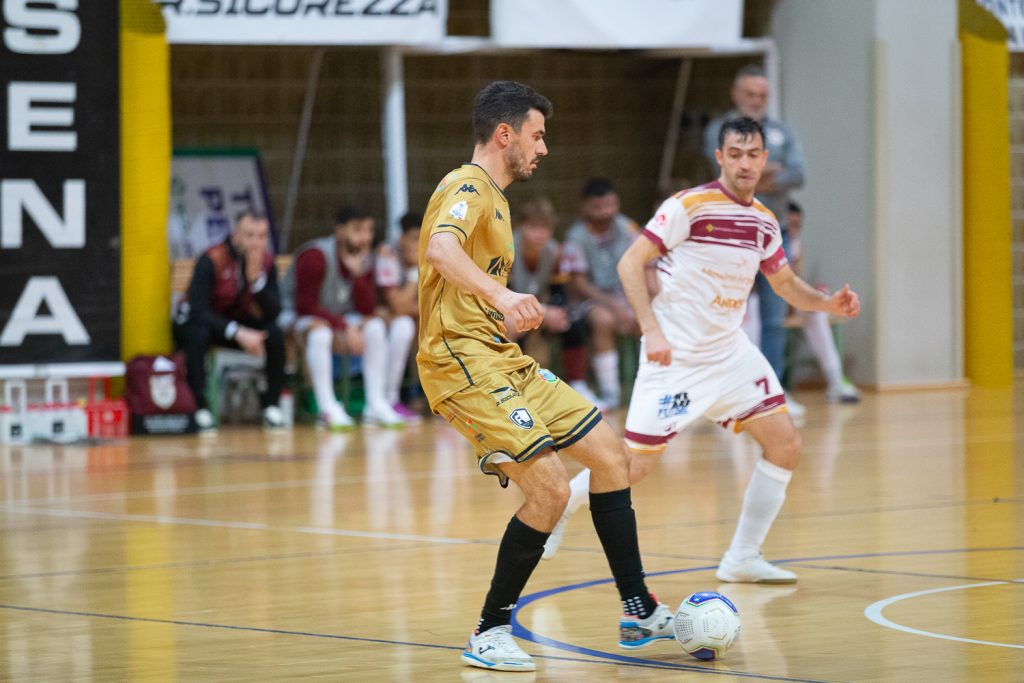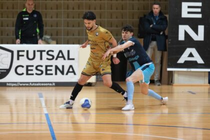La Futsal Cesena espugna il PalaMaser e conquista la seconda vittoria consecutiva, agganciando in vetta alla classifica del Girone A il Maccan Prata a quota 16. La squadra allenata da Osimani disputa un secondo tempo praticamente perfetto e compie un autentico capolavoro in rimonta. La prima frazione di gara si apre con il terribile uno-due dei padroni di casa, che con Modesto (4′) e con Matrone (6′) si portano sul doppio vantaggio. I bianconeri faticano a esprimere il proprio gioco e sono costretti ad agire di rimessa senza che però il Montegrappa conceda grosse occasioni dalle parti del portiere Miraglia. Al 16′ però è Gardelli a mettersi in proprio: salta il proprio marcatore sulla fascia destra e calcia in porta, trovando la deviazione di Matrone prima del decisivo tocco di Dentini per il gol che accorcia le distanze. Nella ripresa i romagnoli scendono in campo con un piglio diverso e dominano gli avversari, trovando la rete del 2-2 all’11’ con capitan Pasolini, abile a fiondarsi sulla sfera vagante dopo il palo colpito dalla distanza da Traversari. La pressione della Futsal Cesena non si placa e due minuti dopo è Hachimi a segnare il gol del vantaggio grazie a una conclusione a fil di palo da fuori area. La partita sembra essere indirizzata sui binari degli ospiti ma il Montegrappa pareggia al 13′ con Cerantola, fortunato a colpire il palo e sul rimbalzo la schiena di Montalti, con la sfera che rotola aldilà della linea di porta. I bianconeri non si accontentano e a un minuto e mezzo dalla fine subiscono il sesto fallo, che consente loro di andare sul dischetto del tiro libero: a sorpresa calcia Pritoni che non si fa ipnotizzare dal portiere locale e segna. Nel finale i padroni di casa utilizzano la carta del portiere di movimento perdendo però palla nella trequarti della Futsal Cesena: Dentini da distanza siderale indovina la conclusione e gonfia la rete per il definitivo 3-5.