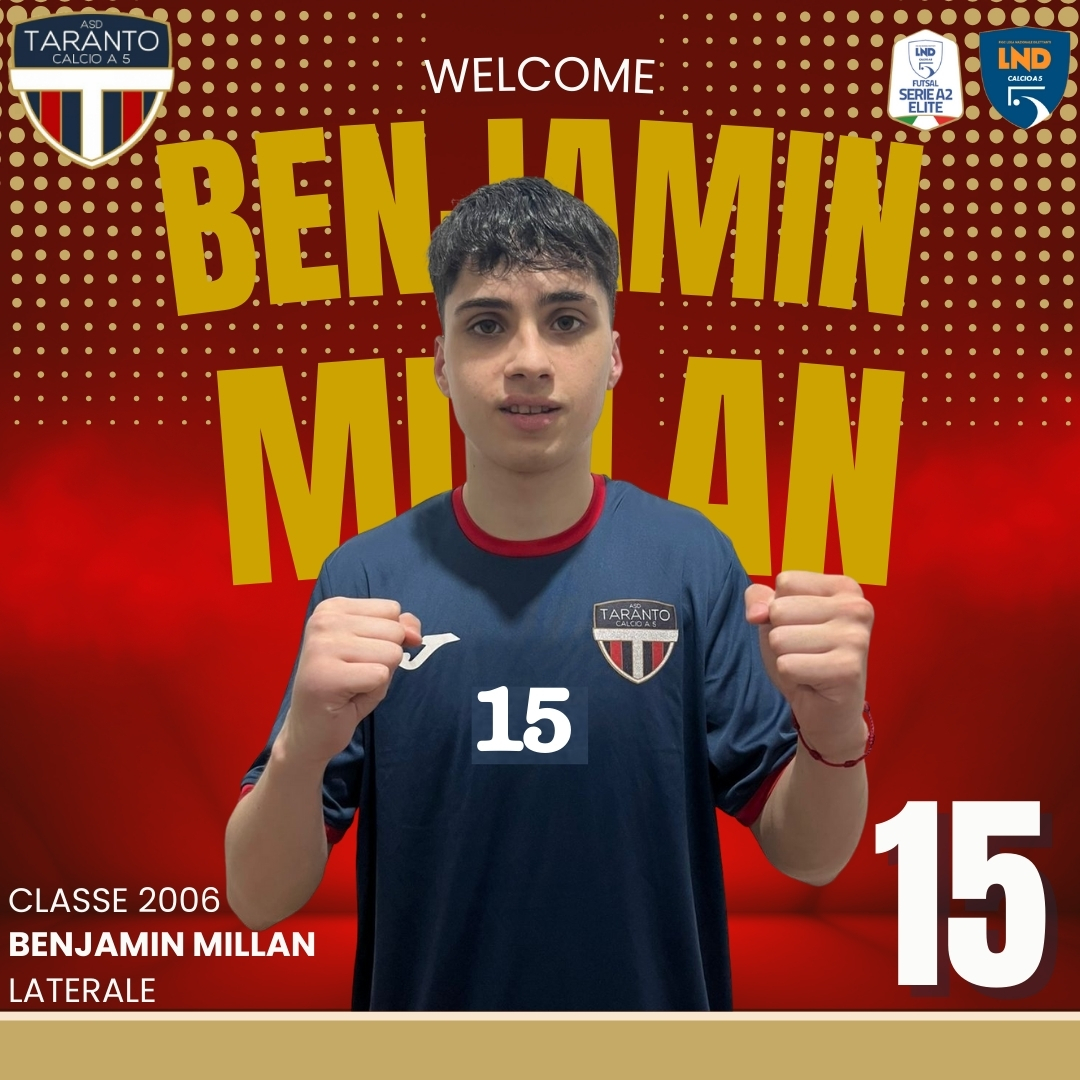 Nato il 17 ottobre 2006, Millan è già a Taranto da alcune settimane, dove si sta ambientando rapidamente sotto la guida di mister Angelo Bommino. Segno della fiducia del club nelle sue qualità è la presenza in distinta nella gara dello scorso sabato contro la Lazio, disputata al PalaFiom: un primo passo simbolico, ma significativo, nel percorso che lo attende.