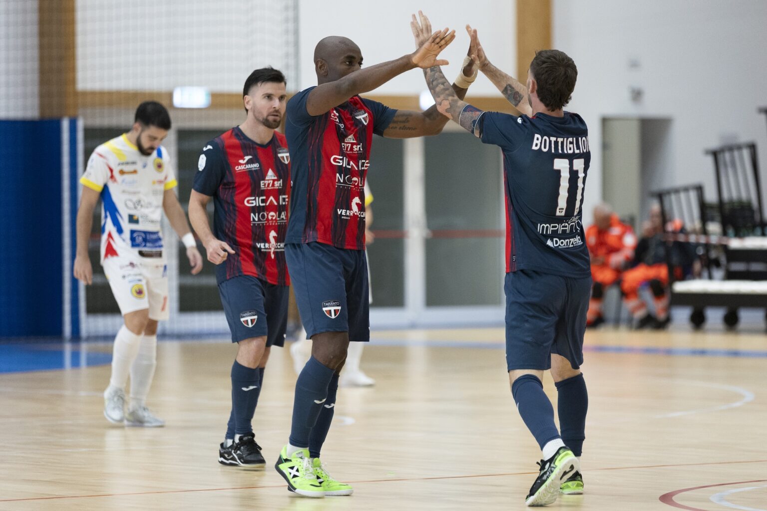 Espindola sfiora più volte la quinta rete — fermato da Palazzo e poi dalla traversa — ma al 14’ arriva comunque il sigillo di Di Pietro, autore di un elegante pallonetto su assist di Quinto. Nel finale, con l’Itria in power play, la New Taranto resta compatta e chiude i conti con lo stesso Quinto, che dalla propria metà campo trova la porta sguarnita per il definitivo 6-3.