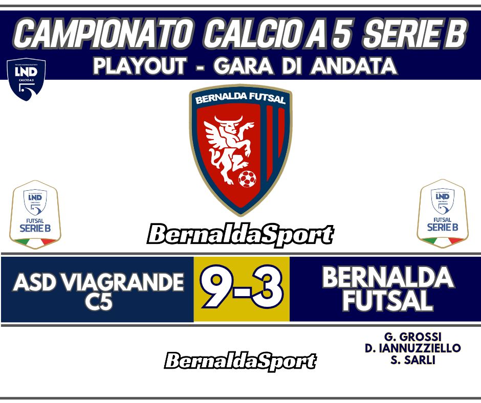 Non basta un buon primo tempo al Bernalda Futsal (chiuso in vantaggio per 2-1 grazie alle reti di Grossi e Iannuziello) per uscire indenne dal “PalaViagrande” nella sfida d’andata dei play out di serie B; nella ripresa i lucani, privi dello squalificato Fusco, crollano sotto il pressing “asfissiante” dei siciliani che segnano otto reti mentre i ragazzi di Volpini riescono a passare solo con la rete del giovane Sarli. Una sconfitta pesante per 9-3 che richiederà la “remuntada” tra una settimana al “PalaCampagna” di Bernalda, match nel quale i ragazzi di Volpini riavranno a disposizione Fusco ma saranno orfani di Nelson Oliveira, espulso nella seconda frazione di gioco.